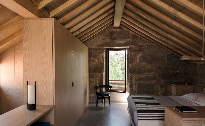 在加利西亞,公共過道對(duì)面是第二幢房子。弗波特說,他們最開始把這個(gè)小屋當(dāng)作存放自行車和劃艇的額外空間,多米尼克說:“做這一部分的計(jì)劃變得非常困難。但現(xiàn)在這里已經(jīng)變成了另一所住宅,淋浴間樓上有一個(gè)小廚房和一間中型臥室?!?/p>