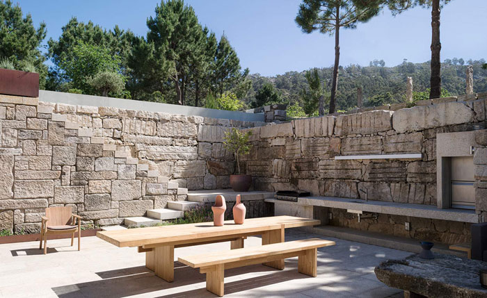 他說:“希望看到外面有干干凈凈的魚和章魚?!彼菍?duì)的。臨近的坎加斯集市上,有一流的當(dāng)?shù)禺a(chǎn)品,室外聚餐是常有的事。其實(shí)院子才是整幢房子最重要的部分?;◢弾r地面與簡(jiǎn)約的栗木餐桌,春天的午餐和夏季的晚餐就可以在這里解決。多米尼克說:“我們?cè)瓉碛X得這里可能過于封閉,但現(xiàn)在看這里既有室外也有室內(nèi)的感覺。這是一個(gè)非常安寧的空間,又有天空作頂。在最熱的天氣里,石墻還可以阻隔熱浪,而當(dāng)溫度下降時(shí),晚上自然又會(huì)很暖和?!?/p>