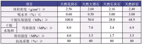 表1:干掛石材的物理性能主要指標及參數(shù)