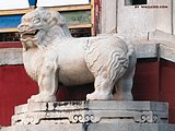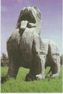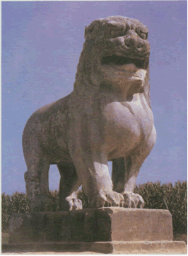 南北朝時(shí)期,墓前雕像有所恢復(fù),一般都在墓前設(shè)置一對(duì)或多對(duì)石獸。這種悖常為“神獸”的想象中動(dòng)物形象,被成為“麒麟”,有的似獅虎,卻右翼,被稱為“避邪”。這種石雕一般都比較龐大,姿態(tài)宏偉,整體感較強(qiáng),又較為濃厚的漢代遺風(fēng)?,F(xiàn)存遺跡多為南北朝時(shí)作品,江蘇南京周邊比較多見(jiàn)。其中最為杰出的是江蘇句容石獅村梁南康簡(jiǎn)王蕭績(jī)墓前的石雕群,造型簡(jiǎn)潔,體積感強(qiáng),最能代表當(dāng)時(shí)的藝術(shù)風(fēng)格。