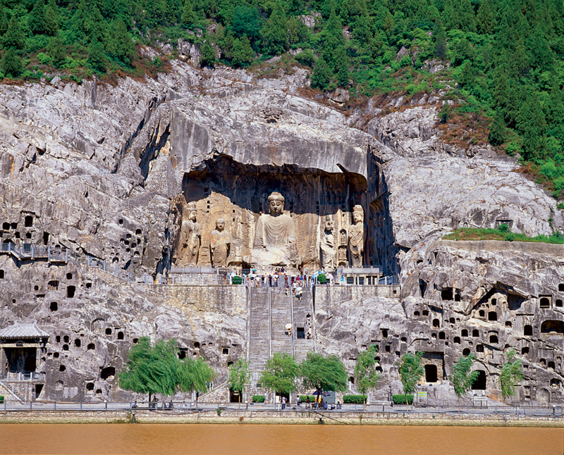不論在云岡、敦煌,還是龍門,幾乎每一洞窟內(nèi)的雕繪都組成一個相互呼應(yīng)、相互關(guān)聯(lián)的完整世界。塑像是石窟的主角,一般本尊佛像呈現(xiàn)為圓雕形式。其背光與身光的圓形或蓮瓣形光環(huán)繪于或浮雕于身后龕壁上。本尊佛兩旁的弟子、菩薩等形象多以類似的圓雕形式表現(xiàn)出來,而供養(yǎng)人的形象則多被繪在墻壁之上,龕楣繪有裝飾性的花朵或飛天,窟內(nèi)整個墻壁滿繪著佛教故事的情節(jié)、場面。形成有主有從、有襯托、有照應(yīng)、有節(jié)奏起伏、有微妙變化的統(tǒng)一的藝術(shù)世界,孤立地繪畫或孤立地看雕塑都不能理解其真正的內(nèi)容和意義。在這樣十種統(tǒng)一的藝術(shù)世界中,多種造型方法共同發(fā)揮著作用,表現(xiàn)出整體性的渾然氣勢。