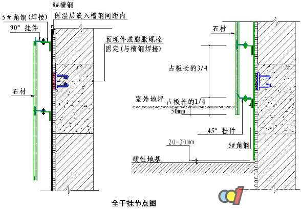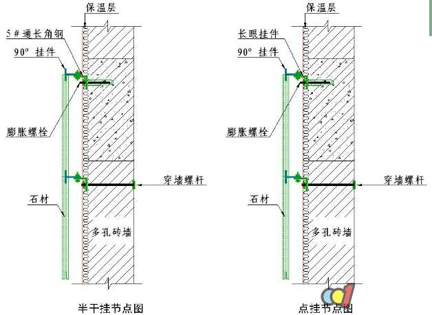干掛石材節(jié)點施工工藝說明: