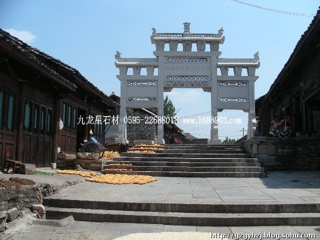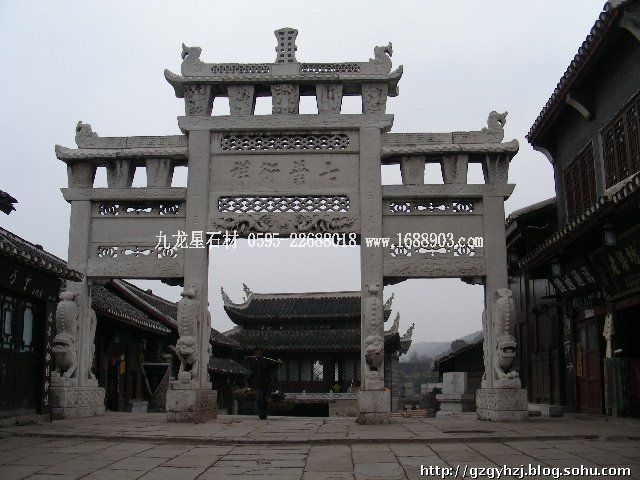 上網(wǎng)查閱了一下關(guān)于牌坊的資料:牌坊,是封建社會(huì)為表彰功勛、科第、德政以及忠孝節(jié)義所立的建筑物。牌坊就其建造意圖來說,可分為四類:一是功德牌坊,為某人記功記德。 二是貞潔道德牌坊,多表彰節(jié)婦烈女,三類是標(biāo)志科舉成就的,多為家族牌坊,為光宗耀祖之用。四類為標(biāo)志坊,多立于村鎮(zhèn)入口與街上,作為空間段落的分隔之用。