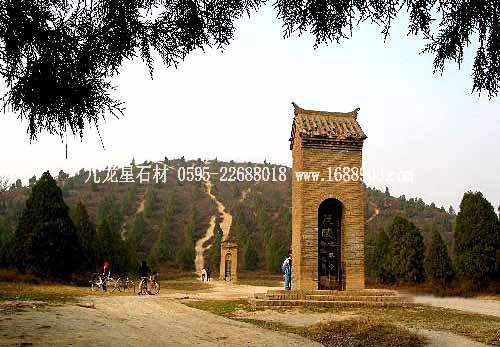 乾陵是唐朝第三代皇帝李治和女皇武則天的合葬陵,位于陜西省乾縣城北6公里的梁山上,距西安80公里。東有豹谷,西有漢谷,依山為闕,氣勢(shì)雄偉。這是唐十八陵中最有代表性和迄今保存最好的一座陵墓。陵園內(nèi)城的南北城墻各長(zhǎng)1450米,東墻長(zhǎng)1582米,西墻長(zhǎng)1438米,墻體厚2.4米。乾陵的地面設(shè)置,遺留到現(xiàn)在的主要是陵墓石刻。這些石刻十分精美,屹立在梁山之巔,至今已有1200多年的歷史。另還有朱雀門(mén)外兩座大碑,即“七節(jié)碑”和著名的“無(wú)字碑”,以及石像61尊。圖片: