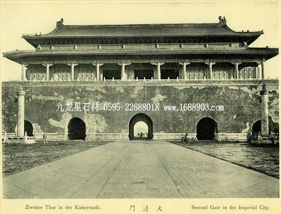 大清門(mén),民國(guó)改為中華門(mén),是真正的“國(guó)門(mén)”,位于天安門(mén)正南,50年代擴(kuò)建天安門(mén)廣場(chǎng)時(shí)拆除。照片上是大清門(mén)的內(nèi)側(cè),自天安門(mén)廣場(chǎng)拍攝。