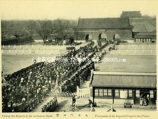 大清門(mén)迎鑾,應(yīng)該是1901年慈禧、光緒自西安回鑾時(shí)進(jìn)大清門(mén)時(shí)的情景,遠(yuǎn)處是天安門(mén)。