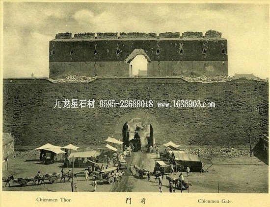 正陽(yáng)門(mén),俗稱前門(mén),是明清兩朝北京內(nèi)城的正南門(mén)。1900年,城樓和箭樓為八國(guó)聯(lián)軍所毀。1903年和1906年分別重建。照片上是重建前的前門(mén)。
