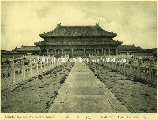 走進(jìn)太和門(mén),呈現(xiàn)在我們面前的就是寬闊的太和殿廣場(chǎng)了,太和殿廣場(chǎng)面積約為3萬(wàn)平方米。地面上扇形排列著各90方漢白玉石塊。它是舉行大朝禮時(shí)鹵薄中各類儀仗的站班位置。(廣場(chǎng)的東廡中間為體仁閣,西廡中間為弘義閣。弘義閣是清朝收藏金銀珠寶的地方,乃國(guó)家銀庫(kù)。東主木,主文,體仁閣曾舉行博學(xué)鴻詞科的考試,以廣泛延攬人才。)