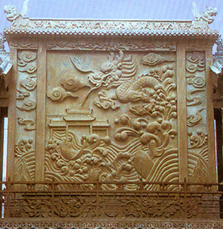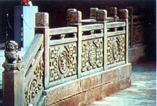 莊園大量的石雕,還是砂石作品。其石材多取于附近山中,質(zhì)地有白、綠、紅、青多種,主要用于橋、廳、臺(tái)、廊的護(hù)欄和柱體,半亭花墻、影壁和牌坊,刀法較青石作品粗獷、雄渾,畫(huà)面疏朗典雅、疏密得當(dāng)、虛實(shí)和諧、古樸堅(jiān)實(shí),顯得特別有氣魄。杏壇、街心牌坊、祠堂獻(xiàn)廳圍欄、養(yǎng)和堂階欄、半亭、三星影壁和莊園西門魚(yú)躍龍門巨幅石額,就是砂石雕刻的代表作。
