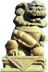 獅子是莊園青石雕刻的又一大類別。眾多的門墩石獅,經(jīng)清代民間藝術(shù)家的大膽想象、沿承、夸張,這一藝術(shù)品成了宅第建筑中不可替代的裝飾像,無(wú)論體量大小,均威武、高貴而又憨態(tài)可掬。為增強(qiáng)裝飾效果,莊園的獅子形象大多頭大臉闊,額隆頰豐,箕口肉鼻,前額突出,從禿頂式的頭部到項(xiàng)背披有漩式鬣毛。胸飾纓絡(luò)華飾,脖上掛有鈴鐺,形態(tài)俯首縮足。雌獅掌撫幼獅,有的還背負(fù)其子;雄獅腳踏繡球或嘴銜彩帶,背負(fù)繡球,較多地汲取了民間傳統(tǒng)舞獅藝術(shù)的成分,富有較強(qiáng)的鄉(xiāng)土氣息和喜慶風(fēng)格。