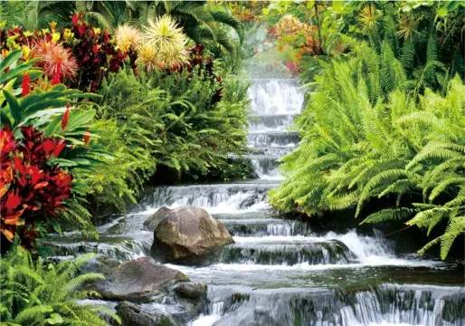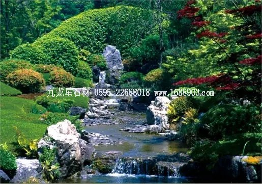 利用高差做出層次豐富的跌水溪流,在兩側(cè)不同種類(lèi)的植物的掩映中,溪流源頭更顯深邃神秘。