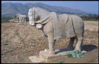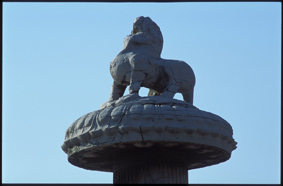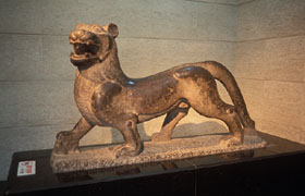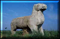 藏王墓位于西藏自治區(qū)瓊結(jié)縣,是公元七——九世紀(jì)歷代吐蕃贊普的墓葬群,現(xiàn)存石獅一對和石碑、柱等。造型除受中原影響外,樣式特征亦帶有波斯風(fēng)格影響。