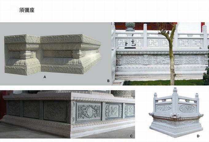 早期臺基的造型為平座式(矩形),后由于佛教的傳入,佛像下面的“須彌座”被移植過來。須彌座即須彌山,是佛教傳說中的世界中心,以須彌山作為佛像的底座以顯示佛的偉大。