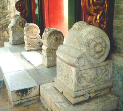 抱鼓石是"非貴即富"的門第符號 中國古代擊鼓升堂、擊鼓定更等等已經(jīng)形成了官制的行為特征,鼓成了官衙的符號。在明清時(shí)期衙門口有鼓是為了"擊鼓升堂"用的,這里擊鼓的目的就是傳聲。古代大戶人家院落深深,光靠拍打鋪首或門鈸可能不足以讓內(nèi)院人聽見,故擊鼓傳聲也是情理之中的。于是我們可以設(shè)想官宦人家在宅門門枕石上刻了一個(gè)象征通報(bào)來客的鼓形,是有心理鋪墊的。因?yàn)槠錁用埠芷镣?模仿之風(fēng)一開剩下來就是定制了。于是安放抱鼓石便成了權(quán)利地位的門戶象征。同樣,因?yàn)楣氖欠ㄊ聦S玫臉菲?把抱鼓石看作能夠驅(qū)邪避災(zāi)的法力象征,在佛寺祠堂等廟宇前面擺放抱鼓石也是順理成章的。另外,將門枕石上方做成圓形可與下部方形基座構(gòu)成"天圓地方"的造型關(guān)系。至于抱鼓石上的獅子造型,是與衙門前的石獅子息息相關(guān)的,我們今天在故宮中仍能看到以整尊石獅子打制的門枕石 抱鼓石是中國宅門構(gòu)件的功能產(chǎn)物,它是依托功能施以裝飾的石制構(gòu)件,起著圍護(hù)大門壯主人威勢以撐門面的作用。中國的外墻宅門一般為兩扇,而內(nèi)室門戶為一扇,因?yàn)闈h字門是由兩戶所組成的,兩扇門決定了抱鼓石必定是對稱的結(jié)構(gòu)。抱鼓石是禮制建筑等級的符號象征,也是"非貴即富"的門第符號,抱鼓石絕不脫離它主人背后的政治、經(jīng)濟(jì)基礎(chǔ)而獨(dú)立存在。正如吳良鏞所言它"已經(jīng)不僅是一種樣式,而是植根于生活的深層結(jié)構(gòu),是一種居住文化的體現(xiàn)。"