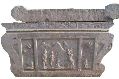 清人物紋石供桌座(圖13) 高70厘米,長132厘米,寬57厘米。
