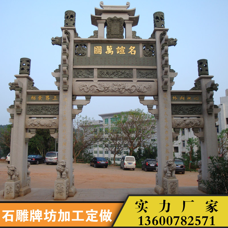 石牌坊建筑結(jié)構(gòu)在我國(guó)算是獨(dú)有形式,在長(zhǎng)期的發(fā)展中牌坊的雕刻建造也都了多樣化的發(fā)扎,雖然牌坊早期的歌功頌德以及表彰性作用被削弱,但作為標(biāo)志性和象征性作用卻得到了保留。牌坊在我國(guó)各地建造應(yīng)用比較多,雕刻設(shè)計(jì)也都展現(xiàn)多樣風(fēng)采,牌坊圖片設(shè)計(jì)制作要考慮什么?如何建造精致牌坊作品?下面石牌坊廠家-九龍星石雕廠為您對(duì)牌坊圖片設(shè)計(jì)制作介紹進(jìn)行詳細(xì)的解析。