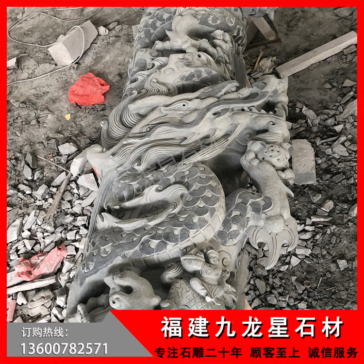 羅源青石雕龍柱 寺院盤龍柱雕刻