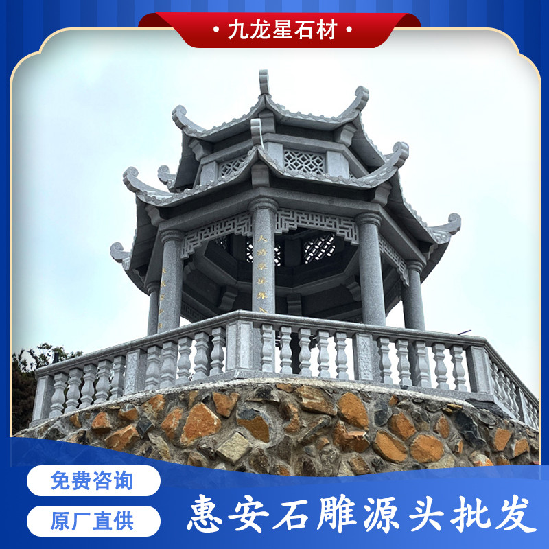 石雕涼亭的作用不僅可以作為休息點、休息區(qū),其實也是景點或者山間的一個標(biāo)志性建筑,美觀又不容易損壞,抗壓性強。今天主要帶給大家的是我們近期的案例——雙層惠安灰八角涼亭。