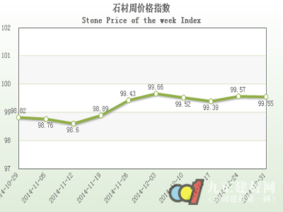 從12月石材周價格指數(shù)走勢圖看,本月石材周價格指數(shù)呈現(xiàn)小幅波動調(diào)整、但總體趨于穩(wěn)定。