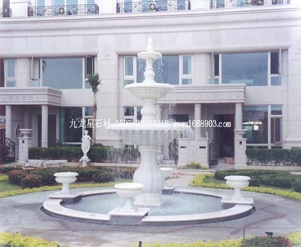 此漢白玉水缽凈高約2.8米,三層水缽結構。配置四座漢白玉花缽做點綴。