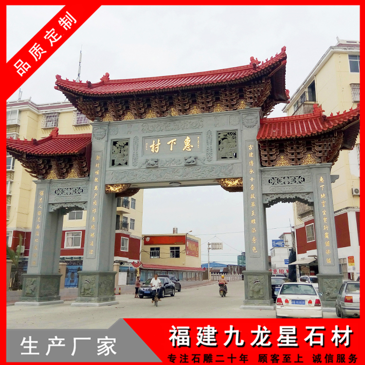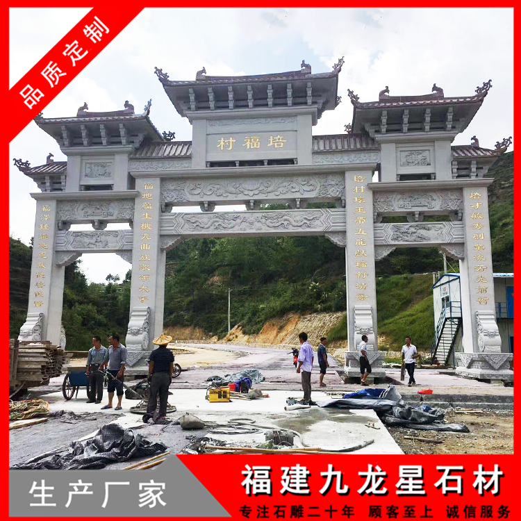 隨著歷史的發(fā)展,村門基本都修建石牌坊,也就是常說的村門石牌坊,村門牌坊是建筑文化中的重要組成部分,經(jīng)過悠久的歷史傳承和發(fā)展,美麗鄉(xiāng)村牌坊圖片樣式和功用在不斷增加,農(nóng)村牌坊蘊含豐富而深刻的文化內(nèi)涵。