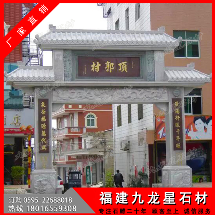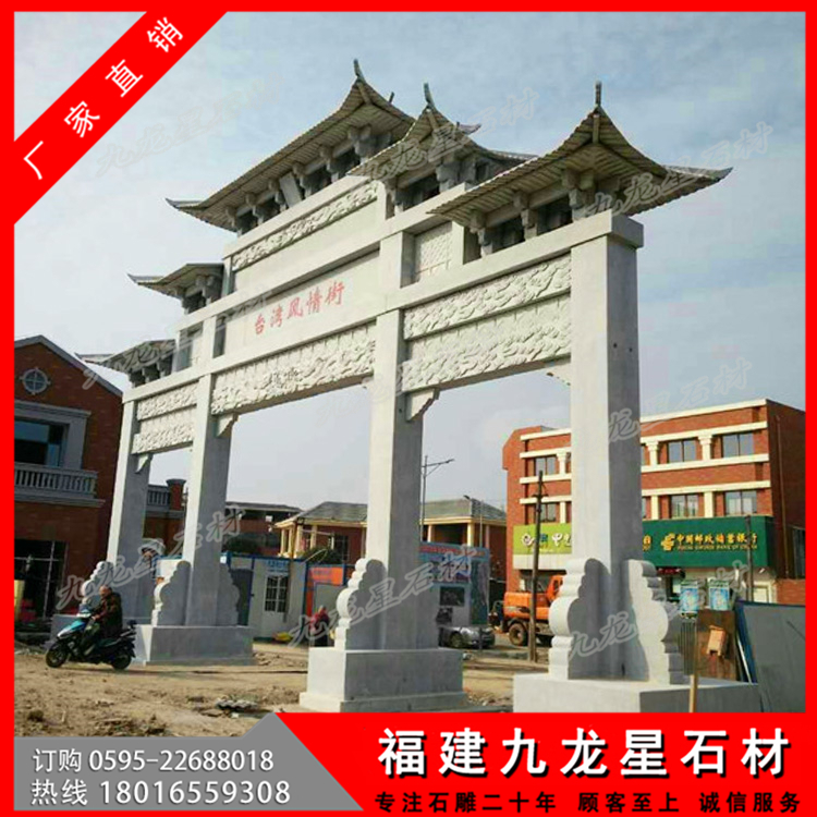 石材牌坊作為一種古色古香的建筑具有悠久的歷史,尤其是在廣大農(nóng)村地區(qū),牌坊幾乎隨處可見。特別是作為村莊入口牌坊,它可以作為一個村莊的標志性建筑,受到廣泛的歡迎。無論是樣式復雜的牌坊還是簡單款式的牌坊,幾乎每個村子門口都會有一個這樣的建筑。