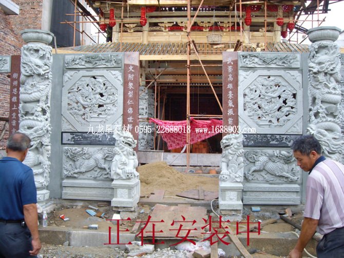 此對(duì)石獅子惠安獻(xiàn)錢(qián)獅造型,含基座高度為1.86米,材質(zhì)為福建青石。